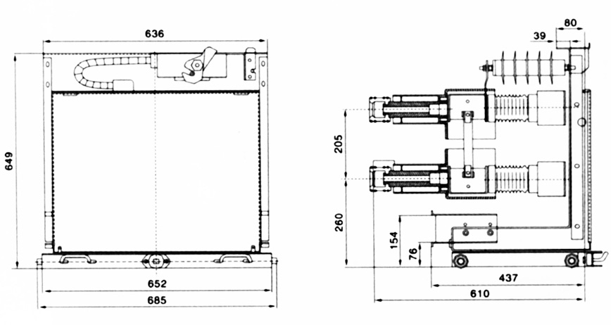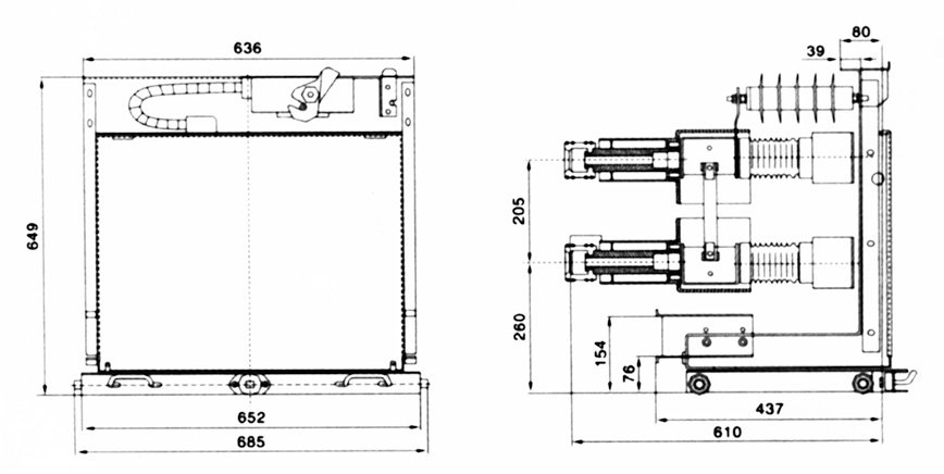 此車型適用于配置JDZ(X)10<G>型電壓互感器,安裝尺寸圖參照大連第一互感器廠,如配置其他型號電壓互感器,訂貨時需另外注明。熔斷器按XRNP-10型或RN2-10型配置。