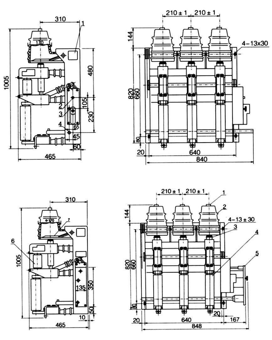 圖1負(fù)荷開關(guān)和組合電器外形及安裝尺寸圖圖(不帶面板) 圖2負(fù)荷開關(guān)和組合電器外形及安裝尺寸圖圖(帶面板)