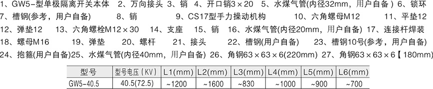 GW5-40.5(72.5)戶(hù)外高壓交流隔離開(kāi)關(guān)為交流50Hz的戶(hù)外高壓電器設(shè)備,額定電壓等級(jí)有40.5kV,供高壓線路在無(wú)負(fù)載情況下進(jìn)行開(kāi)合,以及對(duì)被檢修高壓母線、斷路器等電氣設(shè)備帶電的高壓線路進(jìn)行電氣隔離之用,也可用于開(kāi)、合小的電容或電感電流。